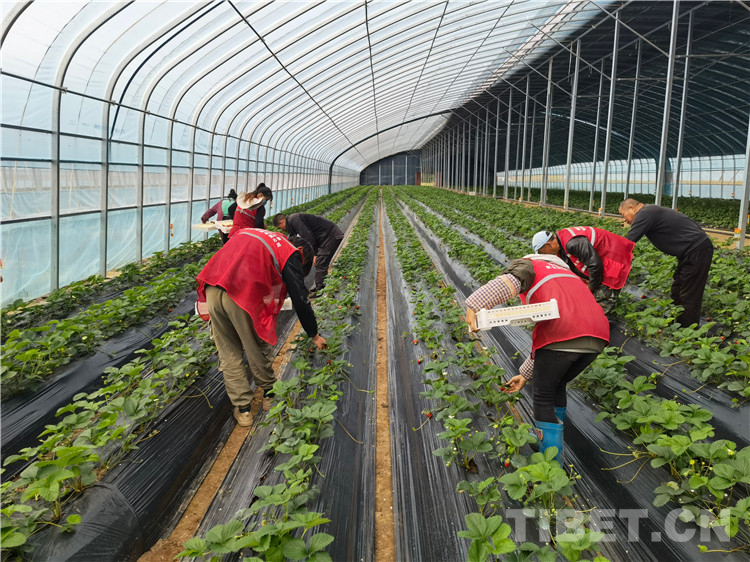 中國(guó)西藏網(wǎng)訊 時(shí)下,在四川省甘孜藏族自治州理塘縣濯?,F(xiàn)代農(nóng)業(yè)產(chǎn)業(yè)園區(qū),120畝草莓經(jīng)過100天的生長(zhǎng)后迎來(lái)了收獲季。走進(jìn)園區(qū)康呷村種植基地,大棚里的草莓長(zhǎng)勢(shì)喜人,當(dāng)?shù)?0多名農(nóng)牧民群眾正忙著梳葉、采摘,大棚里四處洋溢著豐收的喜悅?!耙郧拔覀兂朔N青稞、土豆之外,其余大多數(shù)時(shí)間都到處去打臨時(shí)工,收入也很不穩(wěn)定,一年到頭只能掙幾千元錢?!爆F(xiàn)年25歲的濯桑鄉(xiāng)漢戈村民格絨志瑪說(shuō)道。