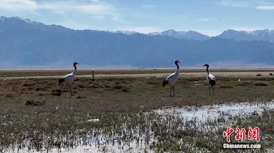 柴達(dá)木盆地烏蘭東大灘濕地現(xiàn)“鳥(niǎo)類大熊貓”黑頸鶴