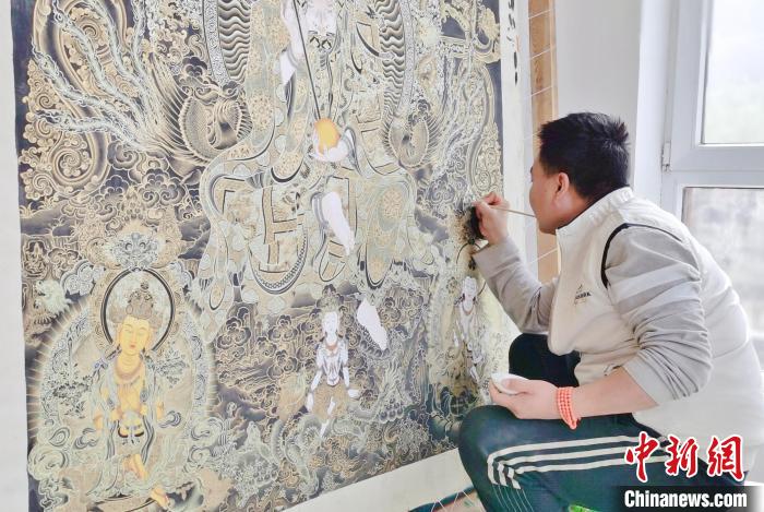 圖為畫師繪畫唐卡?!●R文莉 供圖