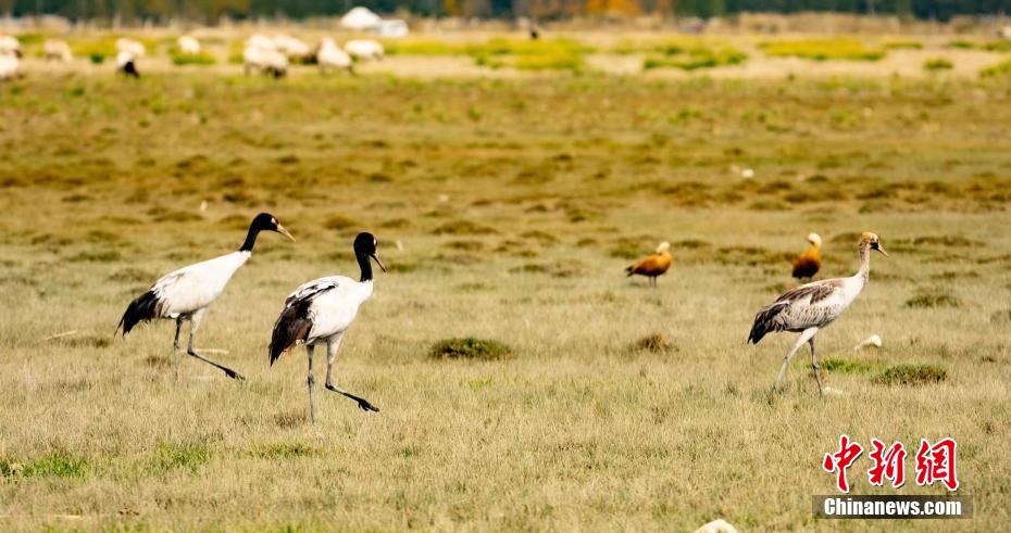 黑頸鶴群現(xiàn)身柴達木盆地都蘭湖國家濕地公園