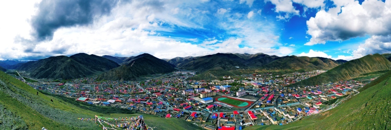 圖為遠(yuǎn)眺青海省玉樹(shù)藏族自治州稱多縣