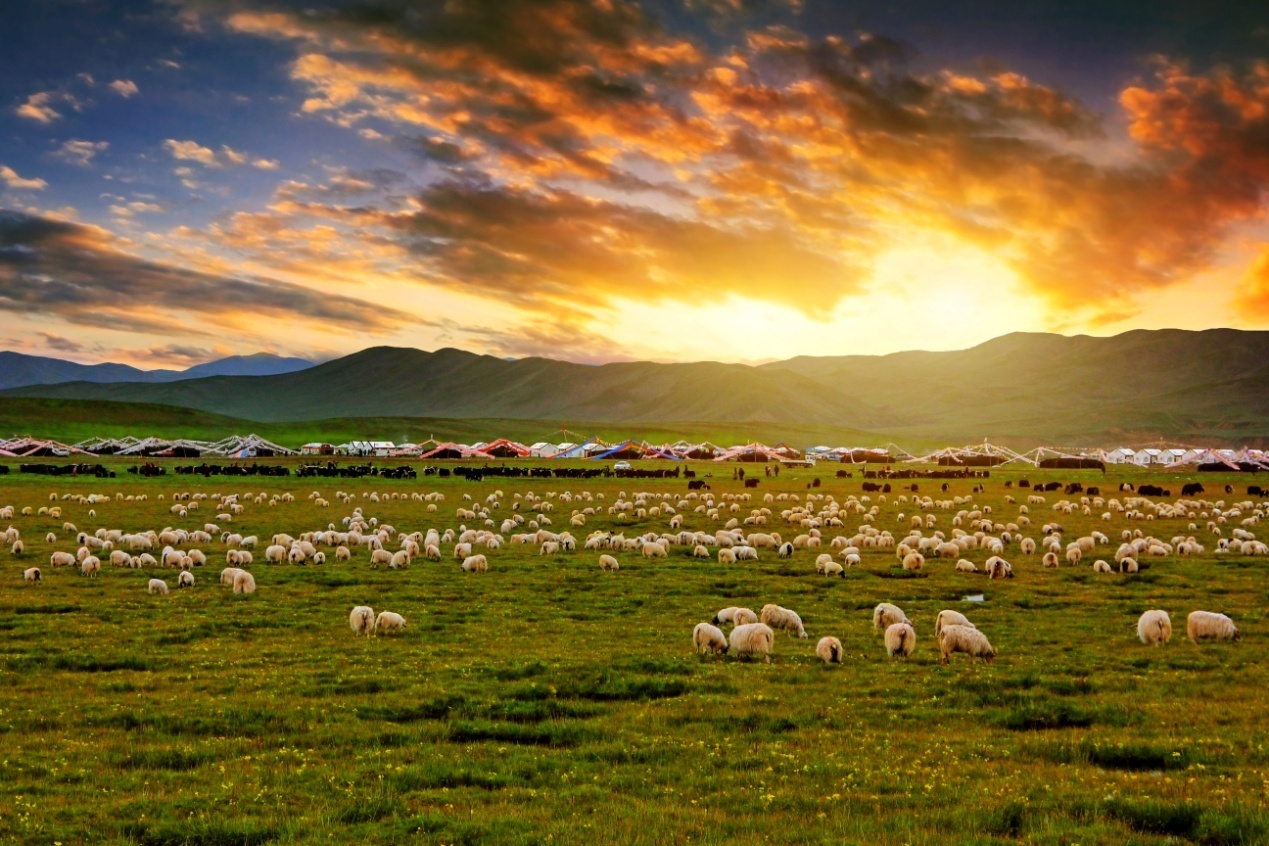 圖為稱多縣草原上的羊群