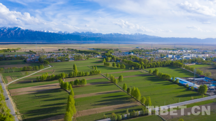 圖為烏蘭縣城綠色生態(tài)屏障鳥瞰