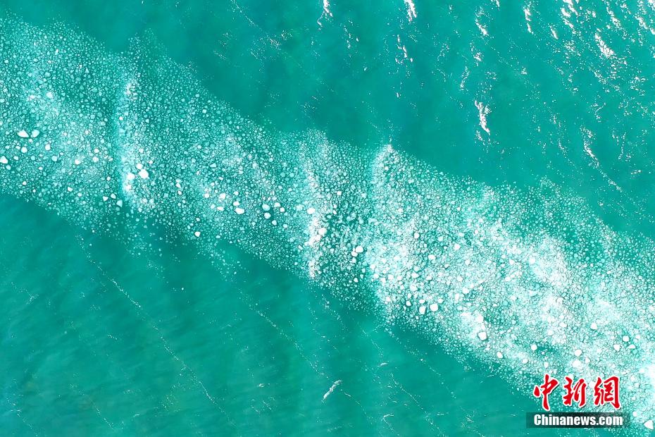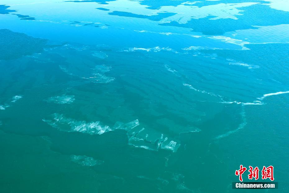 近日,素有“高原藍(lán)寶石”之稱的青海湖開始進(jìn)入冰封期。青海湖水體周邊的零星結(jié)冰,青海湖西部邊緣、北部湖岸區(qū)、鳥島、青海湖斷崖等地出現(xiàn)成片結(jié)冰區(qū)。航拍畫面中可以看到湖心范圍尚有大面積未結(jié)冰區(qū)域。青海湖是中國最大的內(nèi)陸咸水湖。冬日里的青海湖,寧靜而內(nèi)斂。千里冰封,宛如童話世界。封凍的湖面如同破碎的“玉帶”,形成獨(dú)特的景觀。張世偉 攝