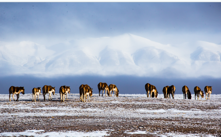 車駛在可可西里無人區(qū)的高原上,越過河和荒野,遠處就是連綿的雪山。隆冬時節(jié)的高原被大雪剝奪了顏色,滿目盡是單調(diào)刺眼的白。