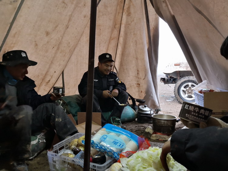 頻繁出現(xiàn)的陷車讓巡山的路途充滿了不確定,“有時候帶了10天的干糧,路上遇上雨天,一走就是半個月?!蹦岈斣髟羞^這樣的經(jīng)歷,到最后餓得實在受不了,他撿來高原上的野牦牛糞,用紙卷起來,點著了當(dāng)煙抽。嗆人的煙霧入肺,感到陣陣惡心,“這會讓人有一種飽腹的錯覺。”