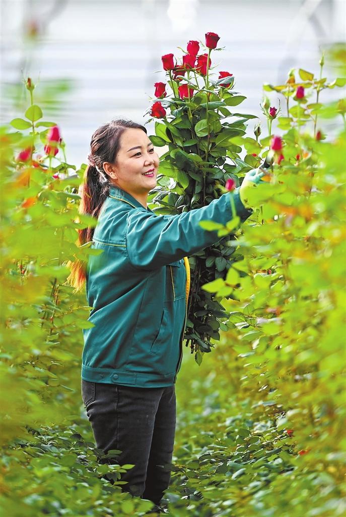 時(shí)值寒冬,與新康村一街之隔的蘭州新區(qū)現(xiàn)代農(nóng)業(yè)雙創(chuàng)基地的花卉溫室里溫暖如春,韓紅明正麻利地修剪著玫瑰花,“一個(gè)月將近4000元的工資,又在家門(mén)口上班,搬來(lái)之前我做夢(mèng)都沒(méi)想到過(guò)。”韓紅明在老家平時(shí)只會(huì)做做農(nóng)活,搬遷后很擔(dān)心自己的就業(yè)問(wèn)題。在新康村黨總支的幫助下,韓紅明搬來(lái)不久就被介紹到現(xiàn)代農(nóng)業(yè)雙創(chuàng)基地溫室內(nèi)工作,既能掙錢(qián)又能照顧老人和孩子。