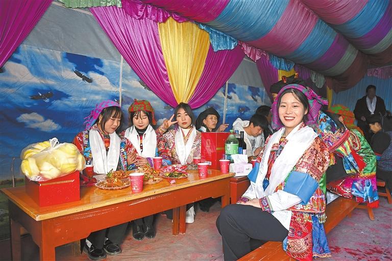 在熱鬧的鞭炮聲和一聲聲祝福中,一場(chǎng)喜慶的藏族婚禮在新康村舉行。搬出大山,遠(yuǎn)離地災(zāi)危險(xiǎn)區(qū),新康村村民本永龍?jiān)趯挸ㄕ麧嵉男录依镉⑺蠲利惖男履铩?/p>