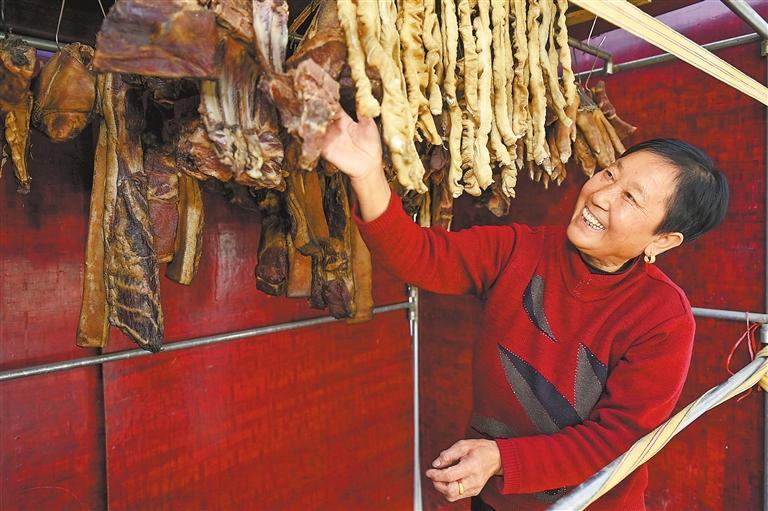 舟曲老人將過(guò)年前制作傳統(tǒng)臘肉的習(xí)俗帶到了新康村。