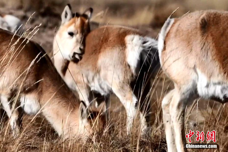 圖為成群普氏原羚正在覓食。剛察縣融媒體中心供圖