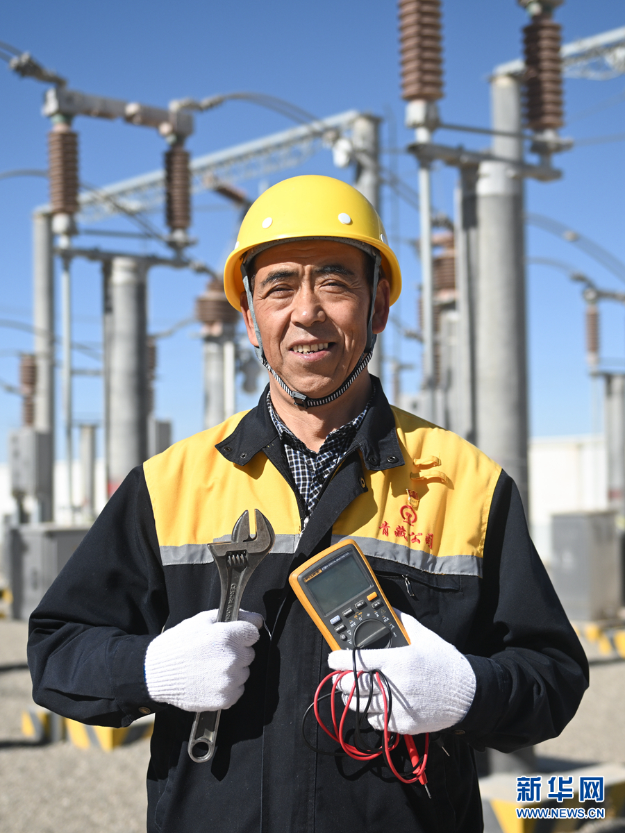 這是2月5日在青藏集團(tuán)有限公司西寧供電段格爾木南變電所拍攝的王永忠肖像。新華社記者 張龍 攝