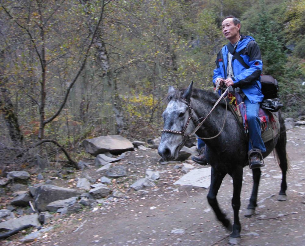 2014年10月27日,印開(kāi)蒲在四川省茂縣松坪溝科考時(shí)騎馬前往目的地(資料照片)。新華社發(fā)
