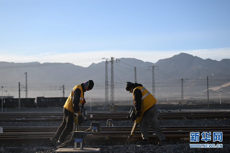 2月7日,中國鐵路青藏集團有限公司格爾木工務(wù)段格南線路工區(qū)的職工在格爾木南站施工。新華社記者 張龍 攝