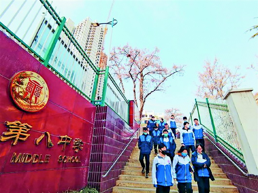 蘭州市第八中學的學生走出校園。當日,蘭州市2023年春季學期“錯時錯峰”開學,全市初三、高三畢業(yè)年級學生到校上課,開始新學期的學習生活。[詳細] -