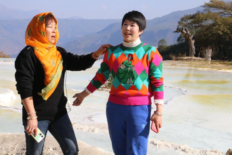 “這里太美了,真是不虛此行!”來自貴州省的謝德秀女士不禁感嘆起大自然的鬼斧神工來。她與朋友游玩虎跳峽之后,沿香格里拉旅游東環(huán)線(虎香公路)自駕到達(dá)香格里拉白水臺風(fēng)景區(qū)。“到景區(qū)之后可以選擇走棧道或者騎馬上山感受本土風(fēng)情,沿途還品嘗了村民自種的核桃和橘子,很棒,下次想帶上無人機(jī)再來拍攝一次。”謝德秀臉上洋溢著喜悅。