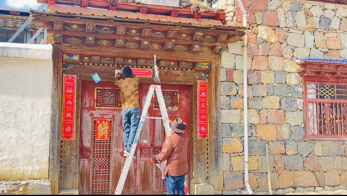 魯茸架起梯子貼起了對(duì)聯(lián),家里廳堂里掛上喜慶的藏式燈籠,藏式茶幾上擺滿(mǎn)了各色水果、飲料和糖果,小孫女單珍也在忙碌的大人間追逐嬉鬧。初稱(chēng)也沒(méi)閑著,仔細(xì)打掃了去年在自家門(mén)口開(kāi)的房車(chē)營(yíng)地,過(guò)年期間,已經(jīng)有客預(yù)定了。