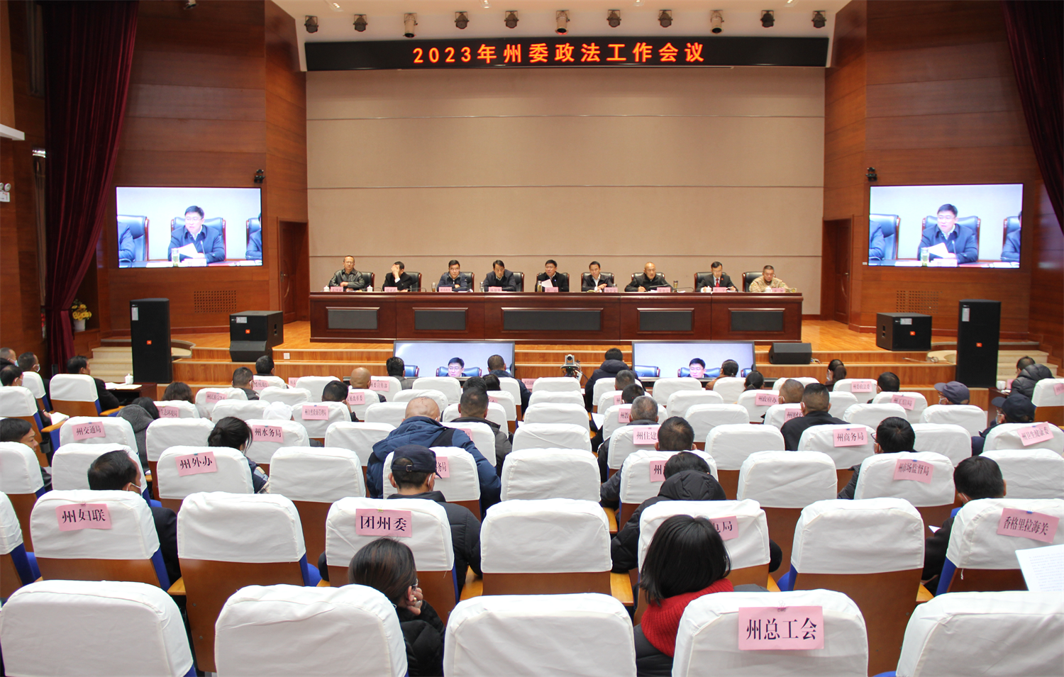 迪慶州委副書記彭山出席會議并講話,迪慶州委常委、州委政法委書記楊學文作政法工作報告,迪慶州人民政府副州長、州公安局局長張朝廷主持會議。