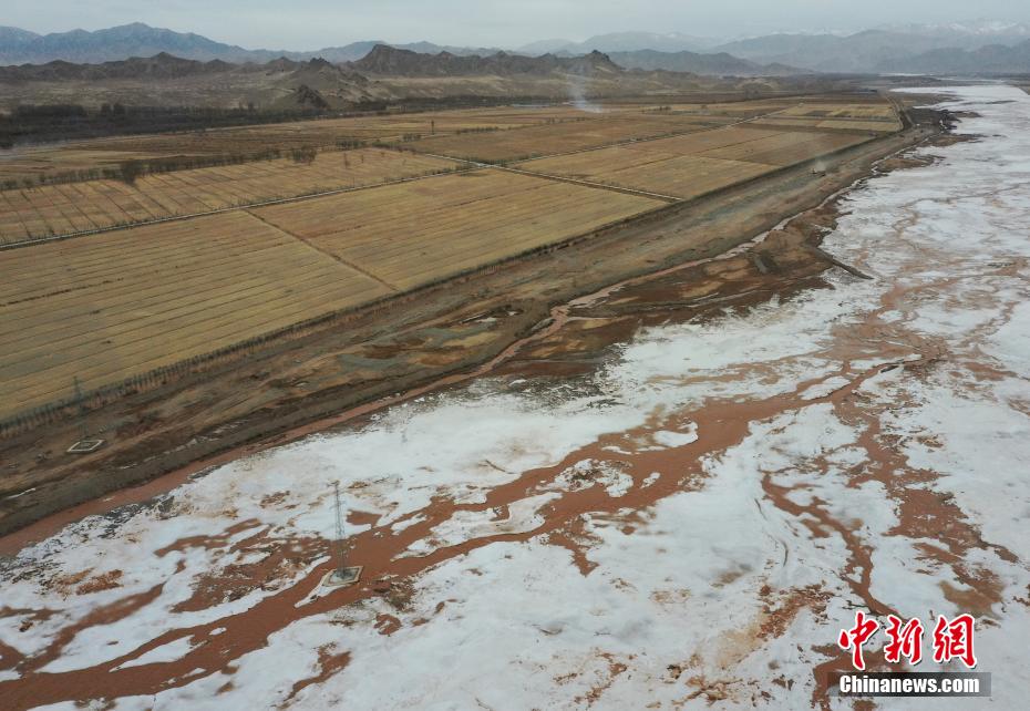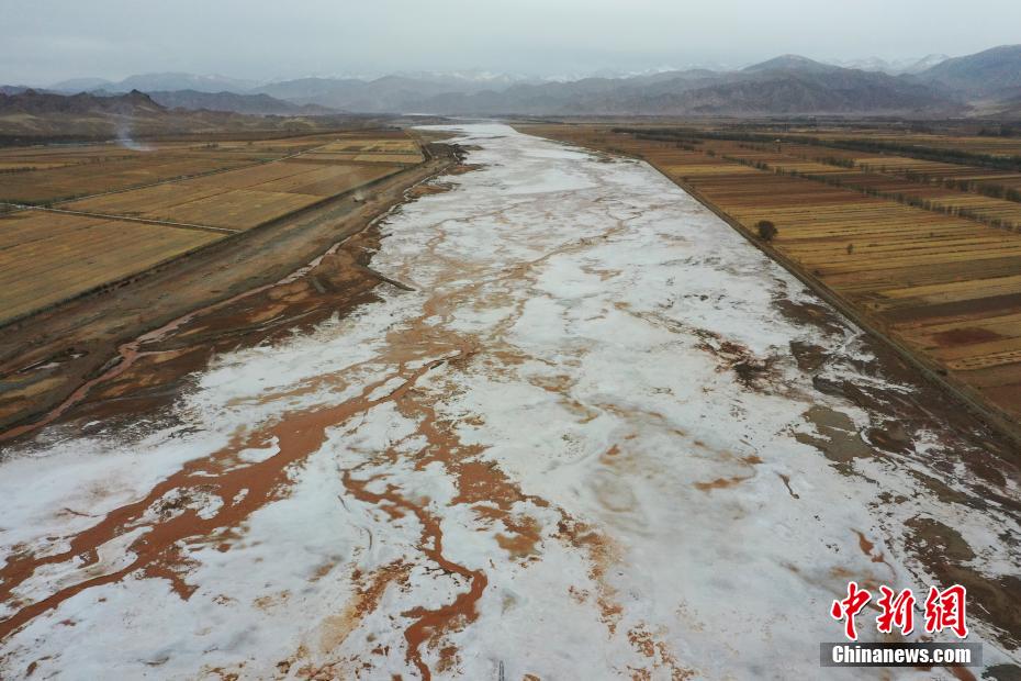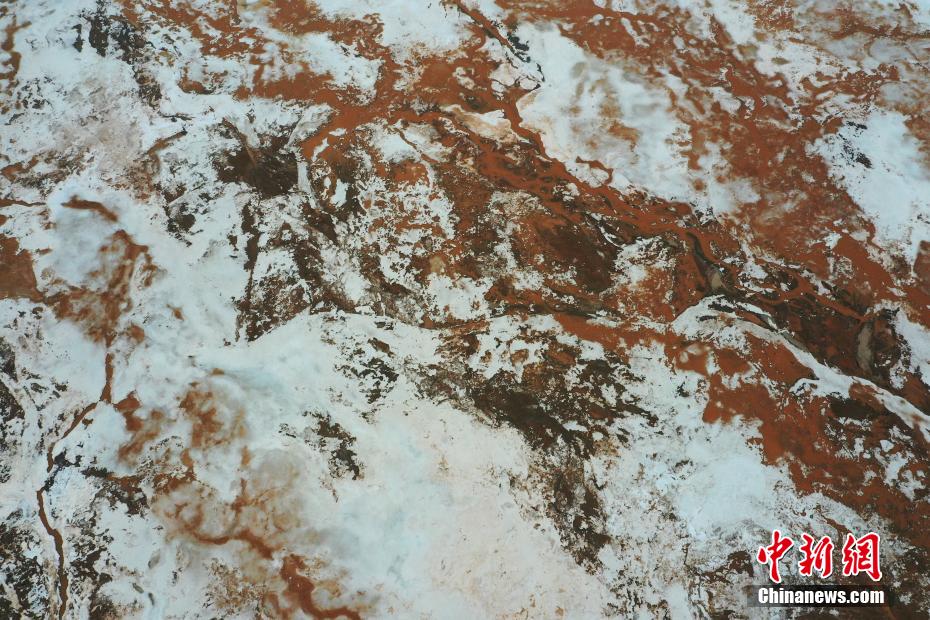 3月19月,航拍青海省海西蒙古族藏族自治州都蘭縣香日德河。香日德河是柴達(dá)木盆地的第三條大河,因河底的石頭由紅色片麻巖組成,加之上游地區(qū)下雨沖刷紅色土壤而形成棕紅色河流的自然景觀(guān),故稱(chēng)“紅河谷”。河流夾帶礦物質(zhì),長(zhǎng)年累月積累形成了干涸淺紅色的河床。初春三月,乍暖還寒,紅色的河流與白色的冰面相互交錯(cuò),絢麗壯美。