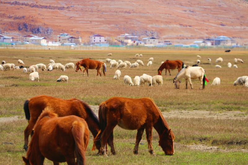 此時(shí)的納帕海,黑頸鶴還未離去,草色漸青,水草抽芽,鳥(niǎo)兒和牛羊悠閑覓食,這就是高原上的春天!