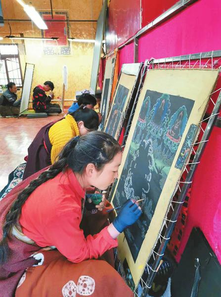 “現(xiàn)在,一個年輕的唐卡畫師,一幅大型作品就能賣出上百萬?!奔侮枠纷”硎?,雖然現(xiàn)在有了很多批量化生產(chǎn)的唐卡產(chǎn)品,但堅持傳統(tǒng)材料和工筆技藝虔心繪制的唐卡作品,依然受到市場的高度認可,“有些畫師的訂單已經(jīng)排到數(shù)年以后了。”目前,壤塘非遺項目產(chǎn)生的經(jīng)濟效益有2000萬元左右,對于偏遠牧區(qū)來說,這是一筆可觀的收入,同時帶動了3000余人就業(yè),創(chuàng)造了一個立足中華優(yōu)秀傳統(tǒng)文化脫貧致富的成功案例。