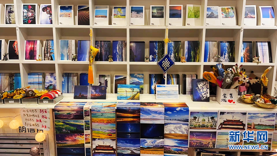 文創(chuàng)小店的店員汪小小向記者介紹:“這些圖案都是我們自己拍攝的,目的就是讓它們‘飛’到全國各地、全世界,讓更多人看到青海美景。我們的明信片還可以代寄,與之相匹配的還有特色郵戳,蓋在明信片上很有儀式感?!蓖粜⌒≌f。