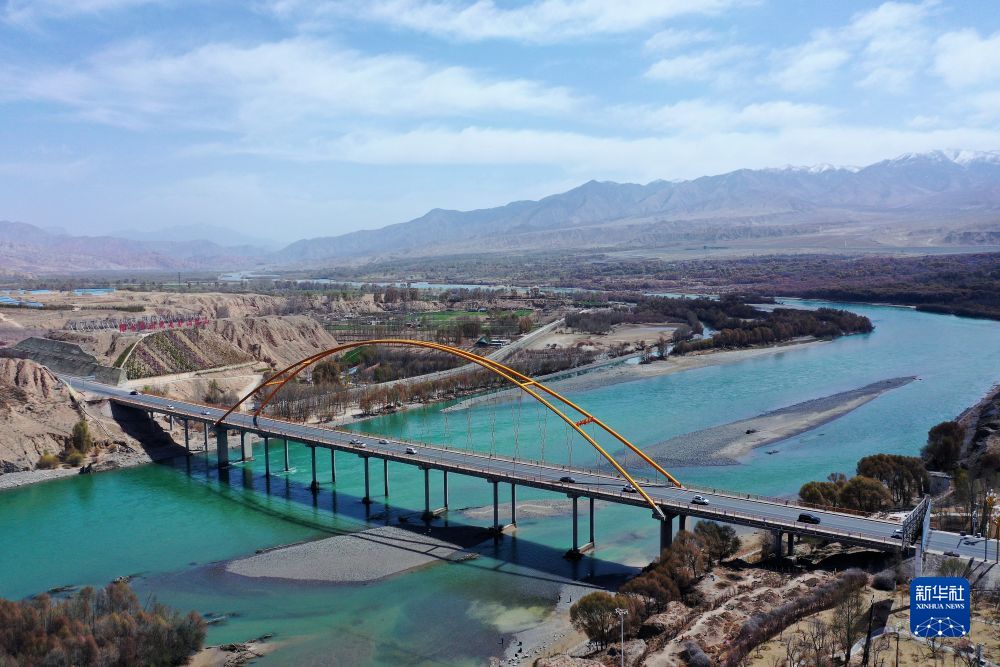 4月9日,車(chē)輛從大橋上駛過(guò)(無(wú)人機(jī)照片)。新華社記者 耿輝凰 攝