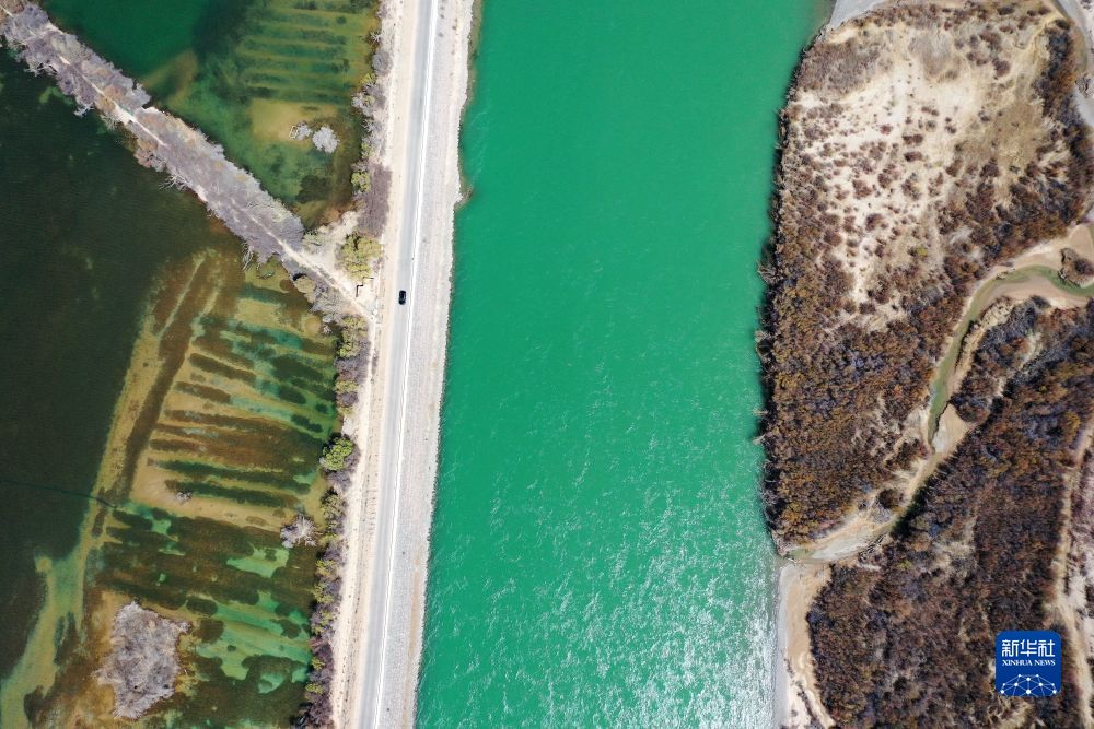 這是4月9日拍攝的青海省海南藏族自治州貴德縣境內(nèi)的黃河風(fēng)光(無(wú)人機(jī)照片)。新華社記者 趙玉和 攝