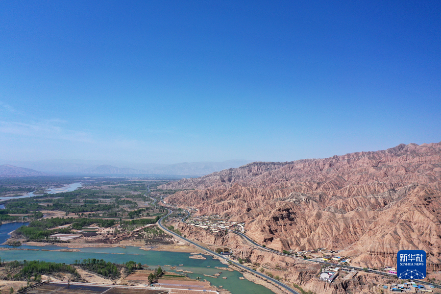 這是4月17日拍攝的青海省海南藏族自治州貴德縣境內(nèi)的丹霞地貌(無人機照片)。新華社 耿輝凰 攝
