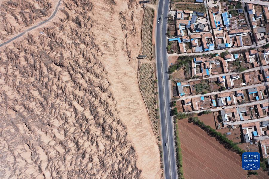 這是4月17日拍攝的青海省海南藏族自治州貴德縣境內(nèi)的丹霞地貌(無人機照片)。新華社 趙玉和 攝