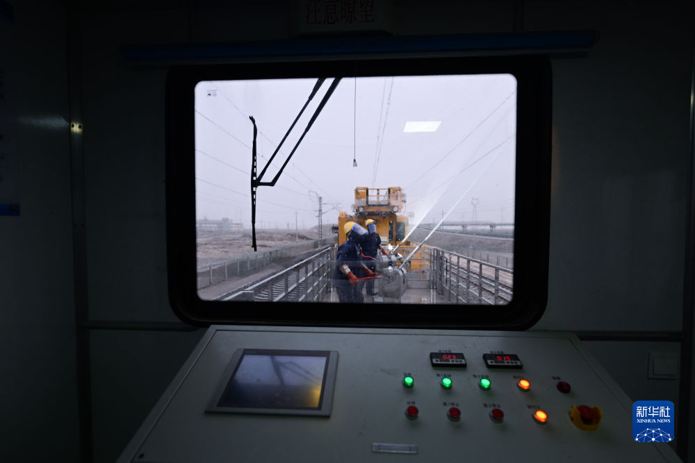 近日,為確保青藏鐵路牽引供電設(shè)備運(yùn)行正常,保障青藏鐵路的暢通運(yùn)行,中國鐵路青藏集團(tuán)有限公司西寧供電段格爾木大修車間大修網(wǎng)工區(qū)組織人員利用沖洗車對(duì)青藏鐵路察爾汗段接觸網(wǎng)絕緣子設(shè)備附著的鹽污進(jìn)行清洗作業(yè)。