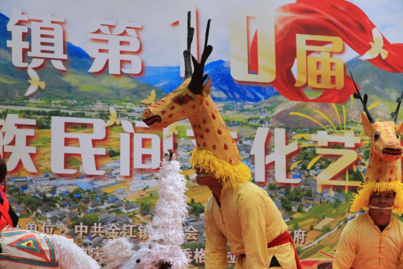 據(jù)了解,每年的農(nóng)歷三月十五是金江鎮(zhèn)吾竹村趕廟會(huì)的好日子。在曾經(jīng),每逢三月十五,村落里往往要集資唱大戲、吃宴席,而在外的年輕人都會(huì)在這一天趕回來(lái),向家鄉(xiāng)的人說(shuō)說(shuō)外面的變化,談?wù)剬?duì)家鄉(xiāng)的感情。發(fā)展到現(xiàn)在,就演變成了一年一度的龍?zhí)睹褡迕耖g文化藝術(shù)節(jié),各個(gè)村落都會(huì)安排歌舞在這一天表演,向他人展示村子、民族的文化。