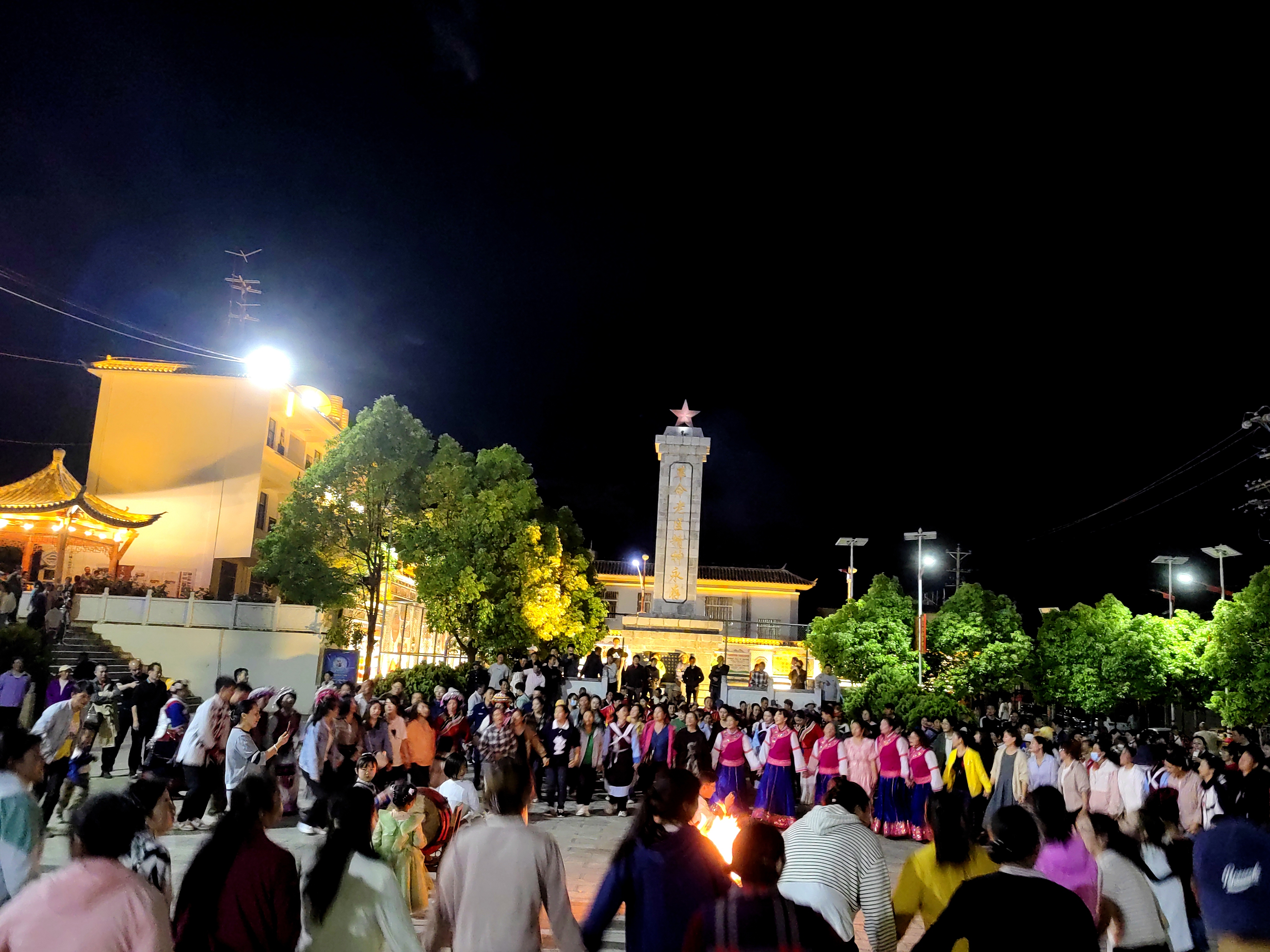 天還沒(méi)黑,金江紅色文化廣場(chǎng)上已經(jīng)圍了不少人,當(dāng)?shù)丶{西族、傈僳族等各族群眾身著節(jié)日盛裝,等待著晚會(huì)的開(kāi)始,