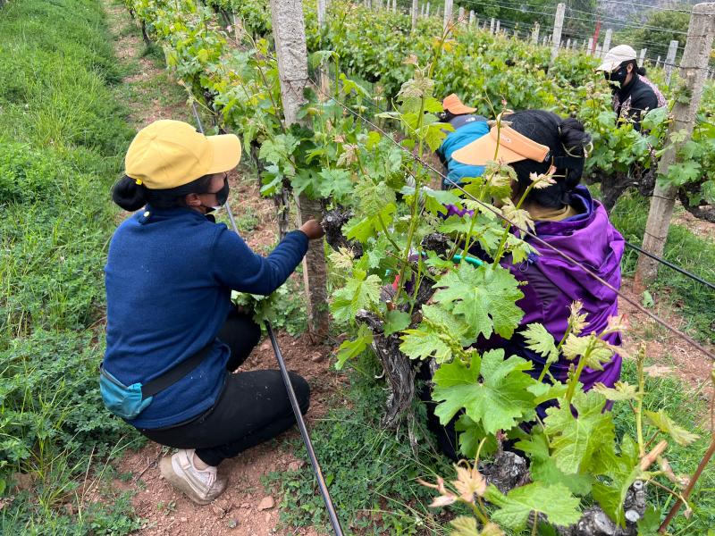 為不斷拓寬農(nóng)戶增收路子,公司與當(dāng)?shù)馗裆C范淦咸逊N植專業(yè)合作社合作,采取“租賃+務(wù)工”模式,按租賃每畝土地30個工,每個工120元的方式,為當(dāng)?shù)卮迕裉峁┬藜?、采摘、釀酒等各類就業(yè)崗位。在此基礎(chǔ)上,村黨總支積極聯(lián)系香格里拉酒業(yè)股份有限公司,通過訂單收購方式,在阿東村下片四個村民小組收購赤霞珠,霞多麗,西拉等品種,從2012年至今每年以3.6元每公斤收購,戶均收入達(dá)12910元。