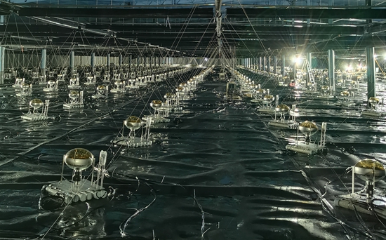 LHAASO裝置WCDA三號水池內(nèi)安裝完成的光電倍增管。中科院高能所供圖
