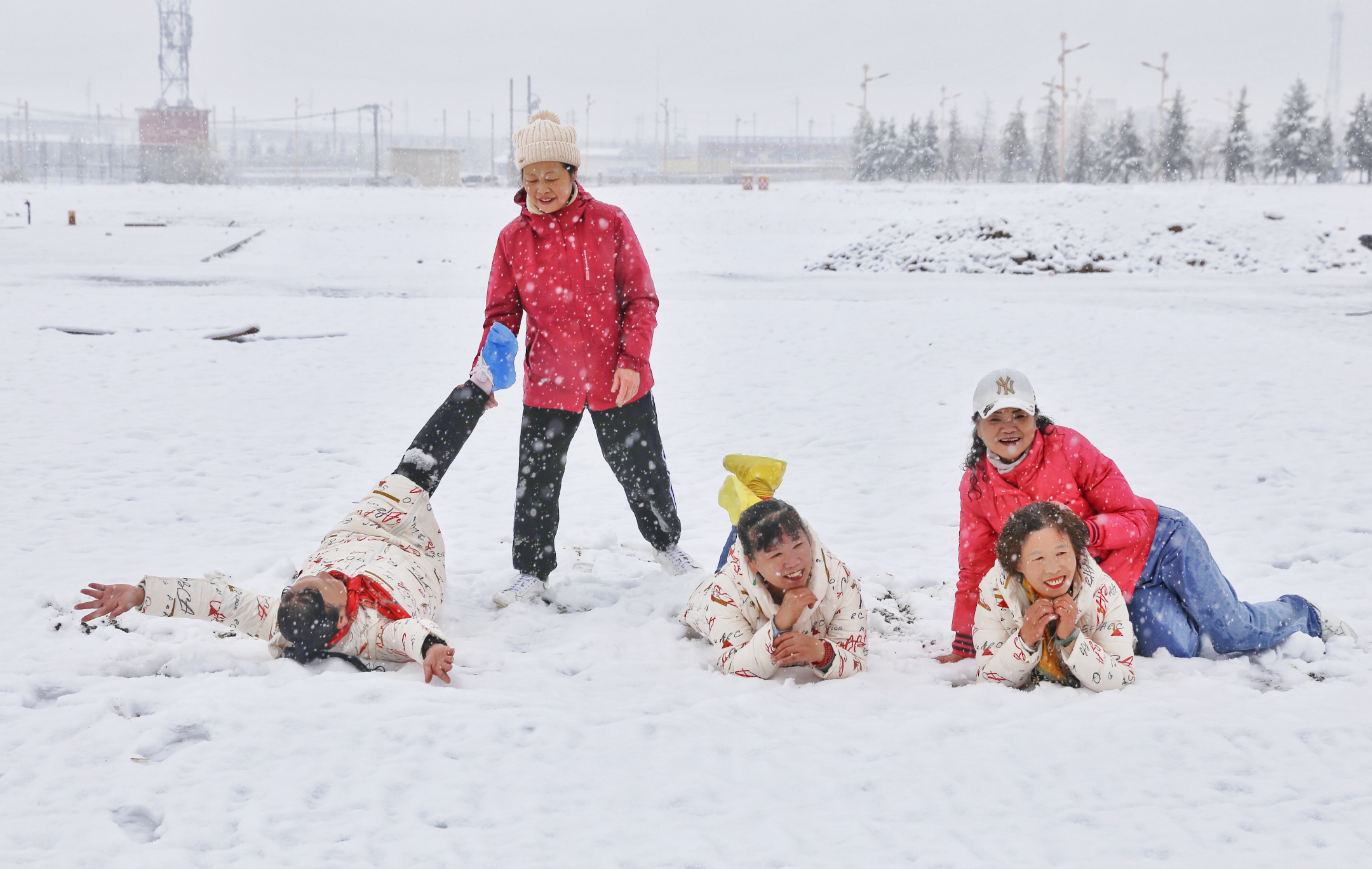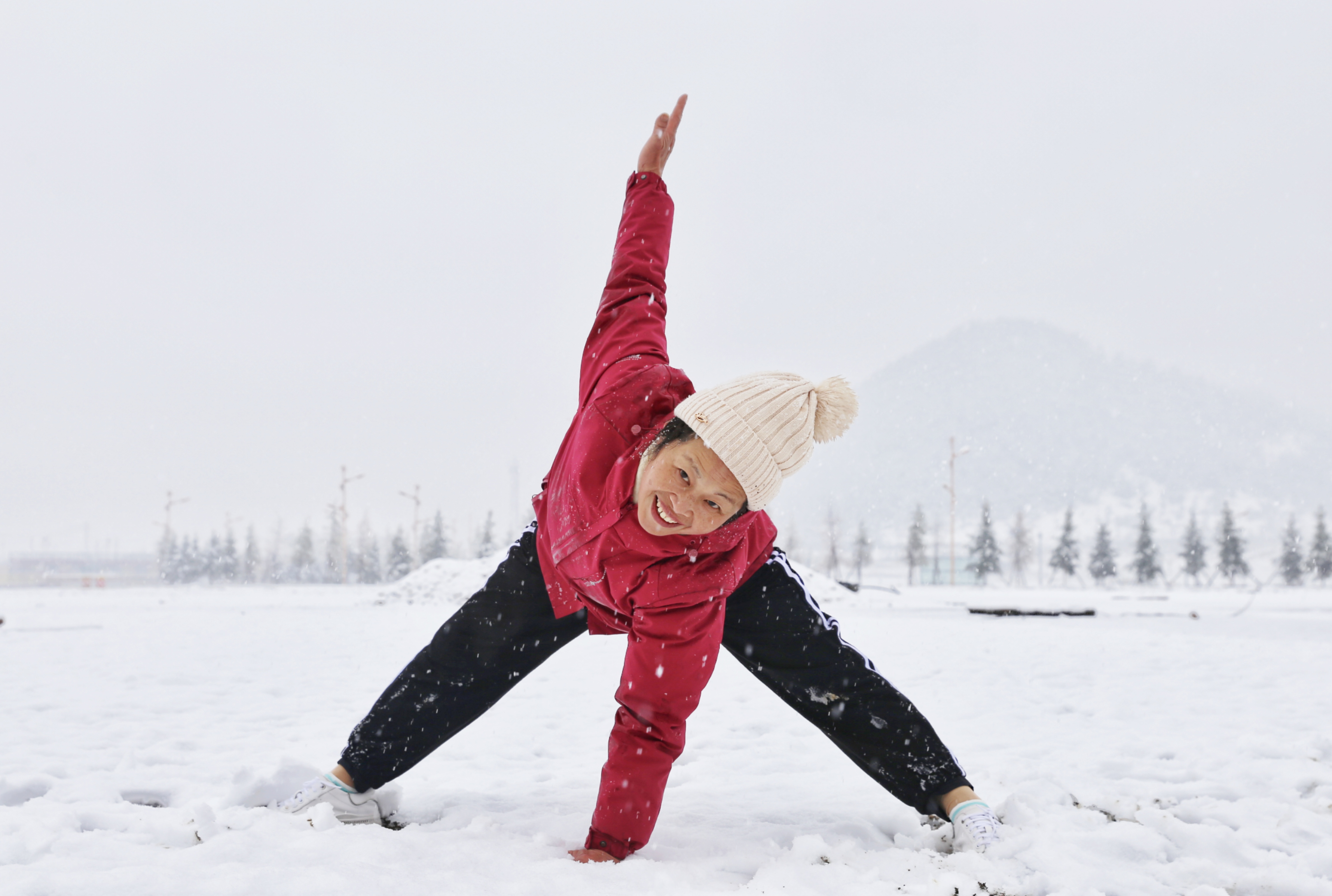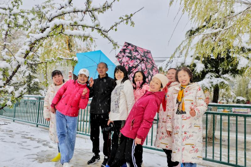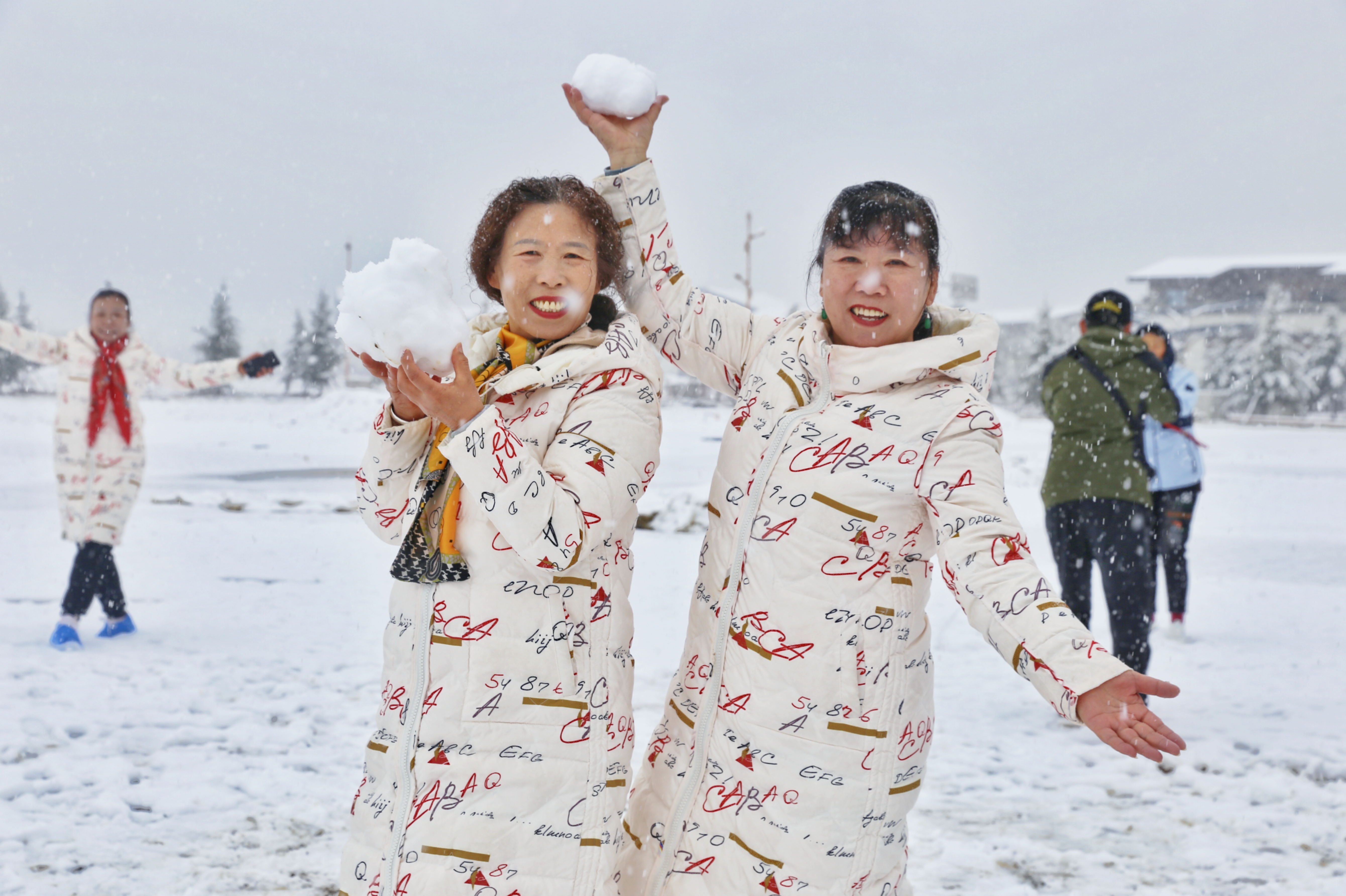 5月15日,香格里拉迎來一場(chǎng)夏雪,大雪紛飛的雪地中一群來自貴州的“嬢嬢團(tuán)”正興奮的玩雪、拍照,“太有意思了,五月也能玩到雪,很難得?!苯衲?5歲的劉嬢嬢告訴記者,她們?cè)谙愀窭锢瓮嫒奶炝耍裉鞙?zhǔn)備返程,出城路上被雪景吸引便索性再留出半天時(shí)間看雪。雪地中的嬢嬢們精氣十足,捏雪球、劈腿、下腰、打滾……大家紛紛擺出自己最拿手的pose拍照記錄下這令人驚喜的美景。