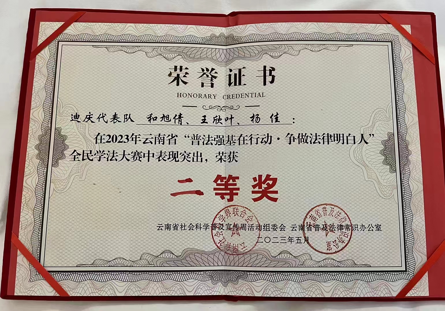 迪慶代表隊在“普法強(qiáng)基在行動·爭做法律明白人”全民學(xué)法大賽中榮獲二等獎