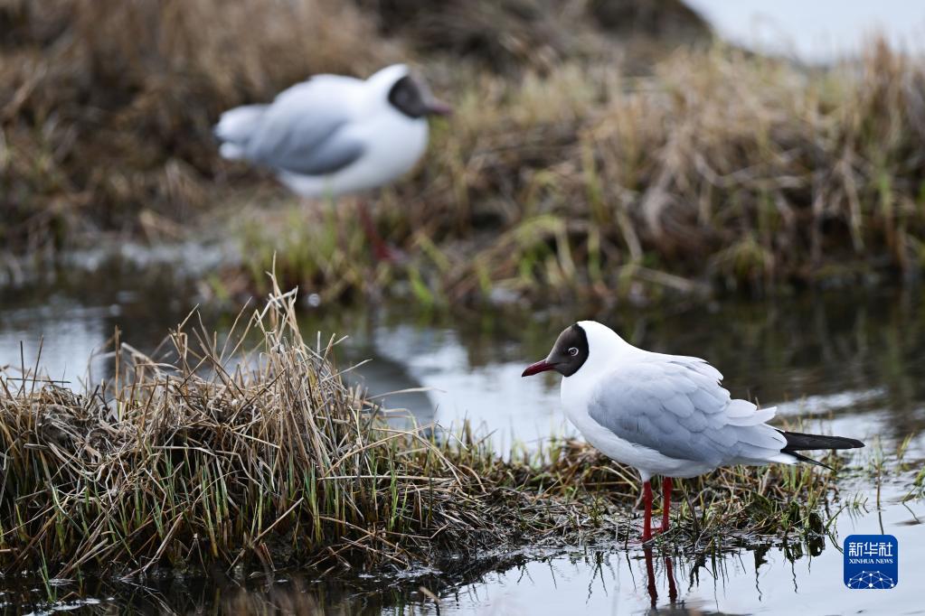 這是5月17日在青海省海北藏族自治州剛察縣境內的青海湖仙女灣景區(qū)拍攝的棕頭鷗。新華社記者 李占軼 攝