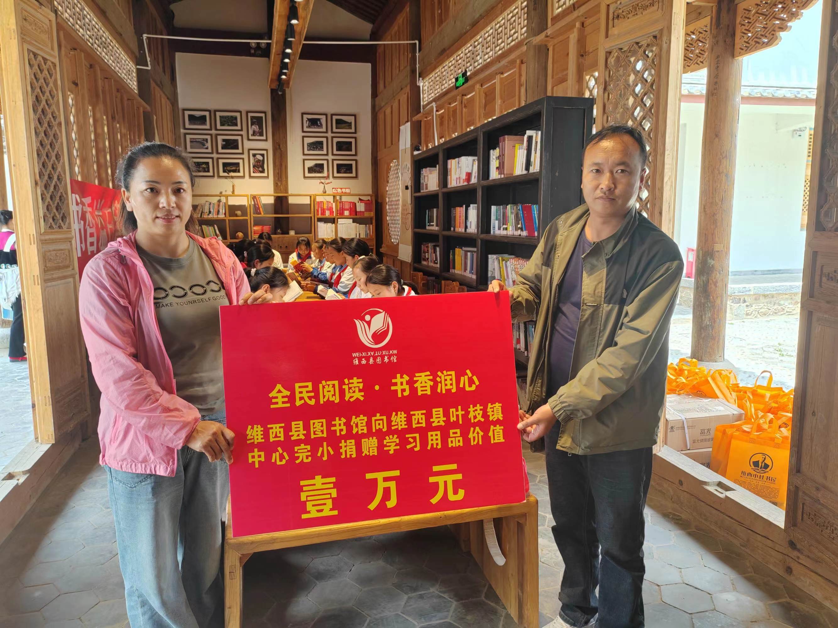 當(dāng)天,還在葉枝鎮(zhèn)鄉(xiāng)愁書院開展了讀書分享活動,維西縣圖書館現(xiàn)場向葉枝鎮(zhèn)中心完小捐贈了價值10000元的學(xué)習(xí)用品。