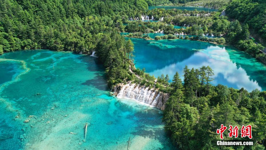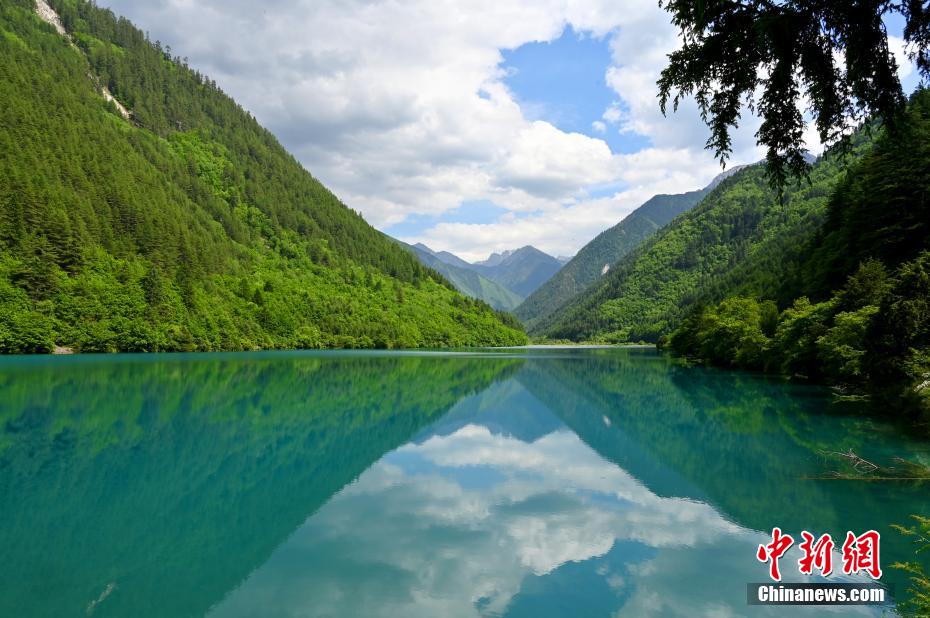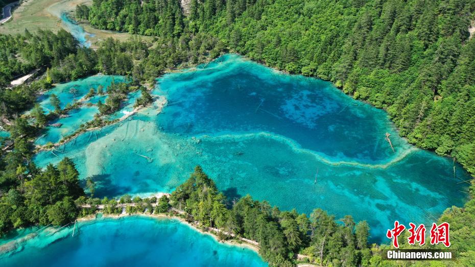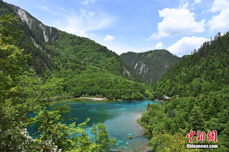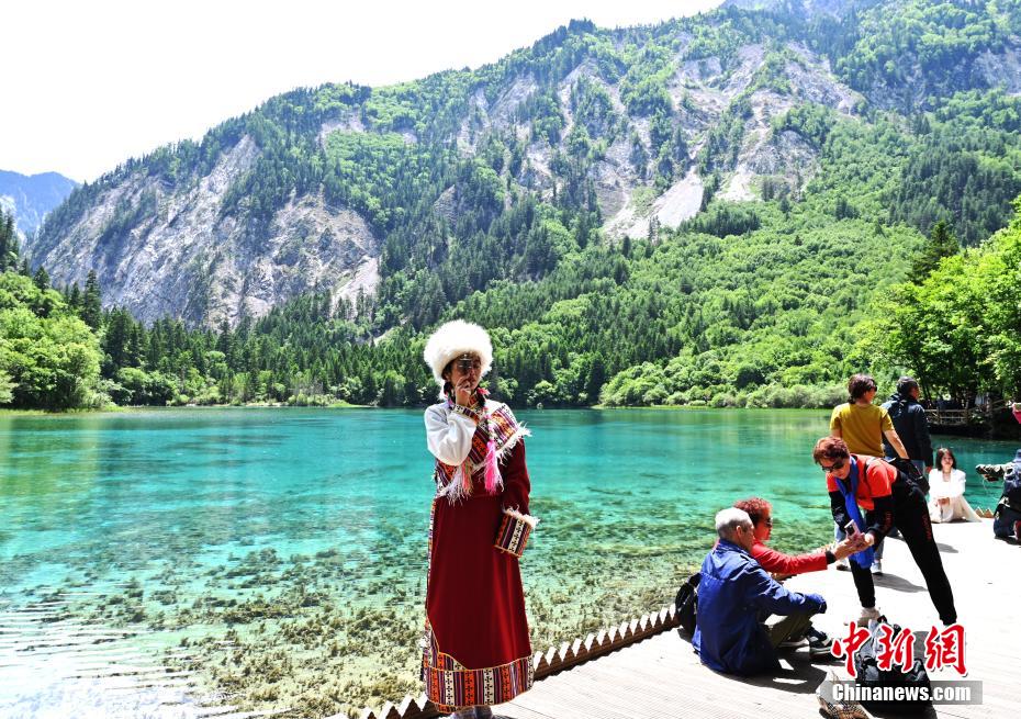 6月8日,初夏時節(jié),世界自然遺產(chǎn)地九寨溝景區(qū)風景如畫,吸引眾多游客觀光游玩。安源 攝