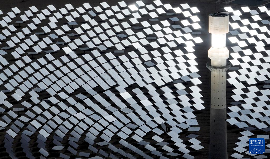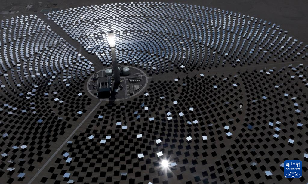 這是6月11日在海西蒙古族藏族自治州格爾木市拍攝的一座光熱電站(無人機照片)。 新華社記者 張宏祥 攝