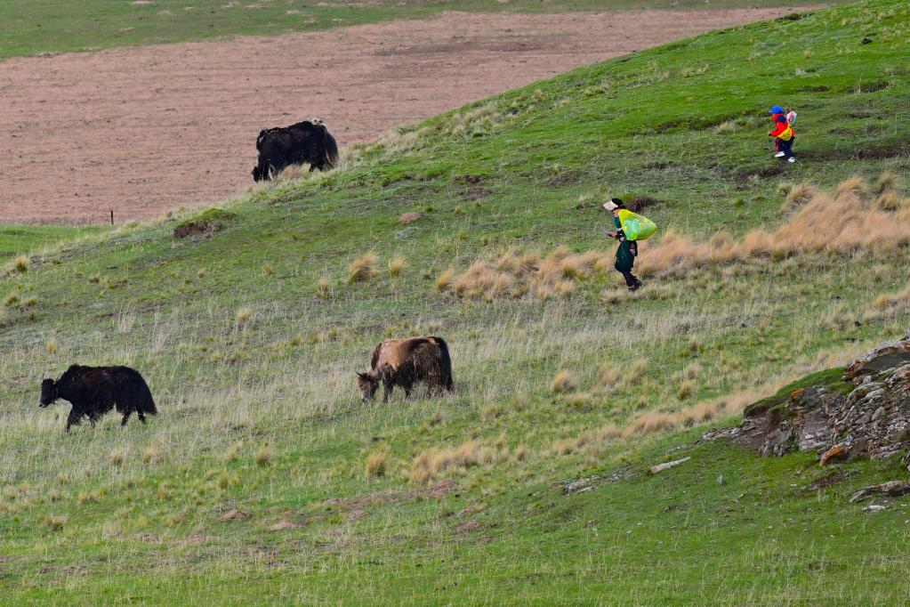 6月9日,在青海省黃南藏族自治州澤庫縣的高原草原上,當(dāng)?shù)啬撩裨诜拍痢?新華社記者 張龍 攝