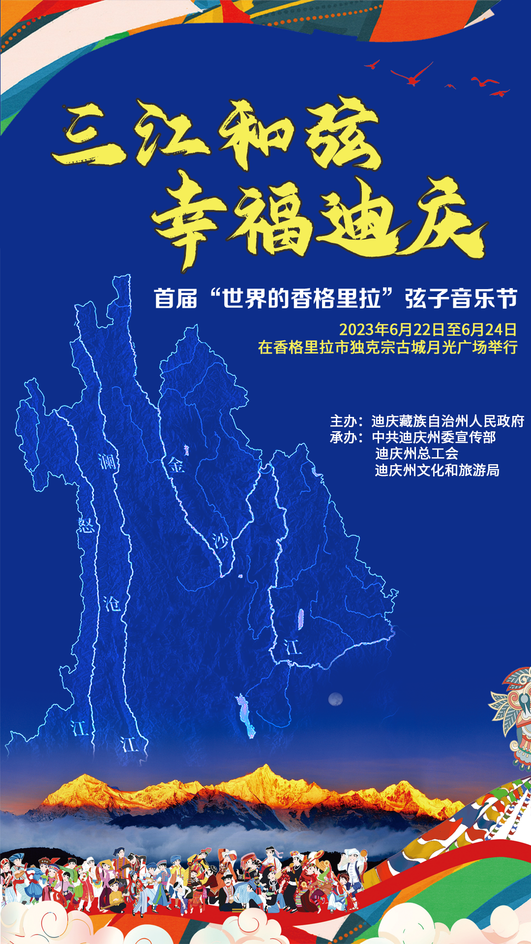 6月22日至24日,“三江和弦 幸福迪慶”首屆“世界的香格里拉”弦子音樂節(jié)活動將在香格里拉市獨克宗古城月光廣場舉行,屆時,歡迎大家到現(xiàn)場聆聽“迪慶妙音”,感受歡樂的藏族弦子舞蹈!