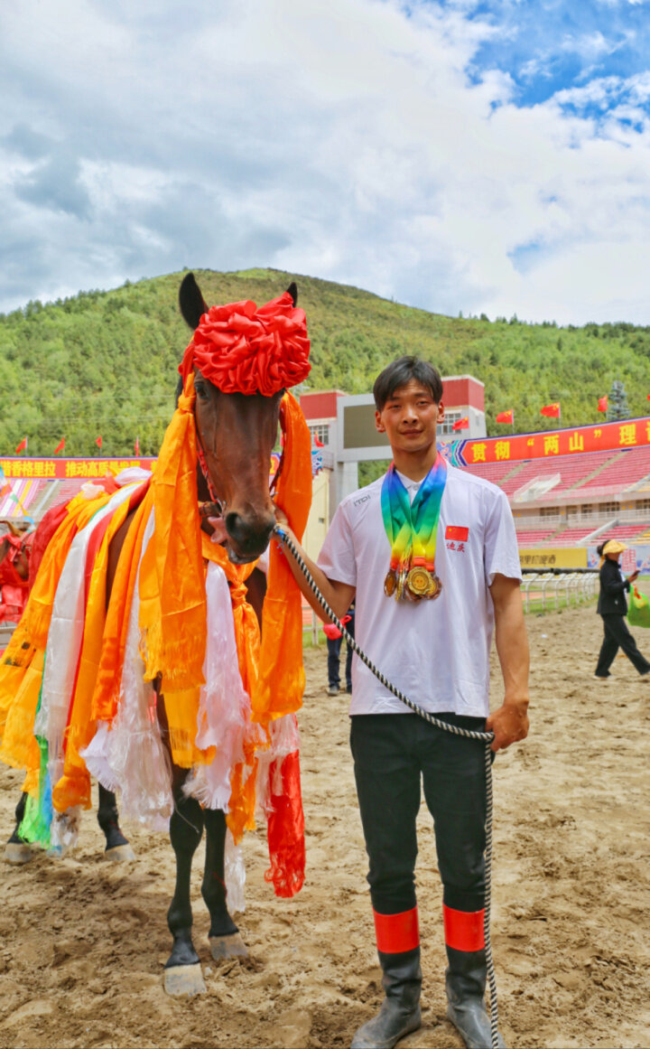 三天來,香格里拉五鳳山賽馬場內(nèi)人頭攢動,熱鬧非凡,州內(nèi)各族群眾和游客從四面八方聚集而來,為三年未能出現(xiàn)在香格里拉端午賽馬現(xiàn)場的駿馬和騎手們搖旗吶喊、加油助威,而來自州內(nèi)及友鄰州市的各代表隊則不負(fù)眾望,為大家呈現(xiàn)了一場場熱血沸騰的高水平馬術(shù)競技?!拔覐?5歲開始參加比賽,今年是收獲最大的一次,連獲了4枚金牌,我很高興,期待明年的端午節(jié)能再次與來自不同地方的選手切磋。”23歲的知詩定主說道。此次,他獲得了甲組1000米走馬、甲組3000米走馬、乙組3000米走馬、丙組1000米走馬賽冠軍。與他并駕齊驅(qū)的嘎提七林則在甲組5000米速度賽、丙組5000米速度賽、甲組3000米速度賽、乙組3000米速度賽中獲得金牌。