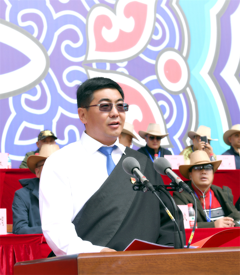 州委書(shū)記羅朝峰宣布迪慶·香格里拉2023年端午賽馬節(jié)開(kāi)幕。