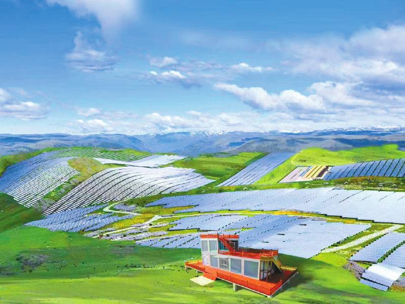 道孚縣亞日500WN“1+N”光伏Ⅰ標(biāo)項(xiàng)目效果圖。道孚縣委宣傳部供圖