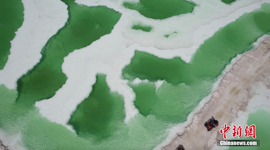 8月15日,航拍地處青海省海西州茫崖市的翡翠湖。翡翠湖是一個(gè)人工鹽湖,田字狀的湖水呈現(xiàn)出青翠的色彩。[詳細(xì)]