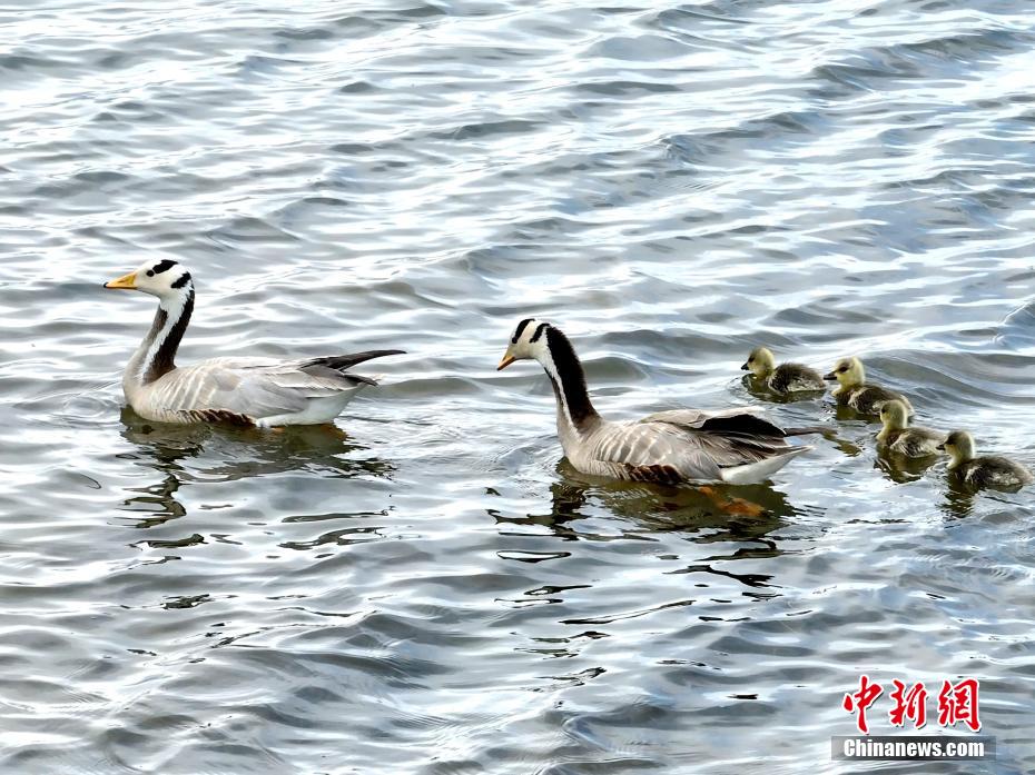 圖為斑頭雁“攜家?guī)Э凇彼杏芜0?攝