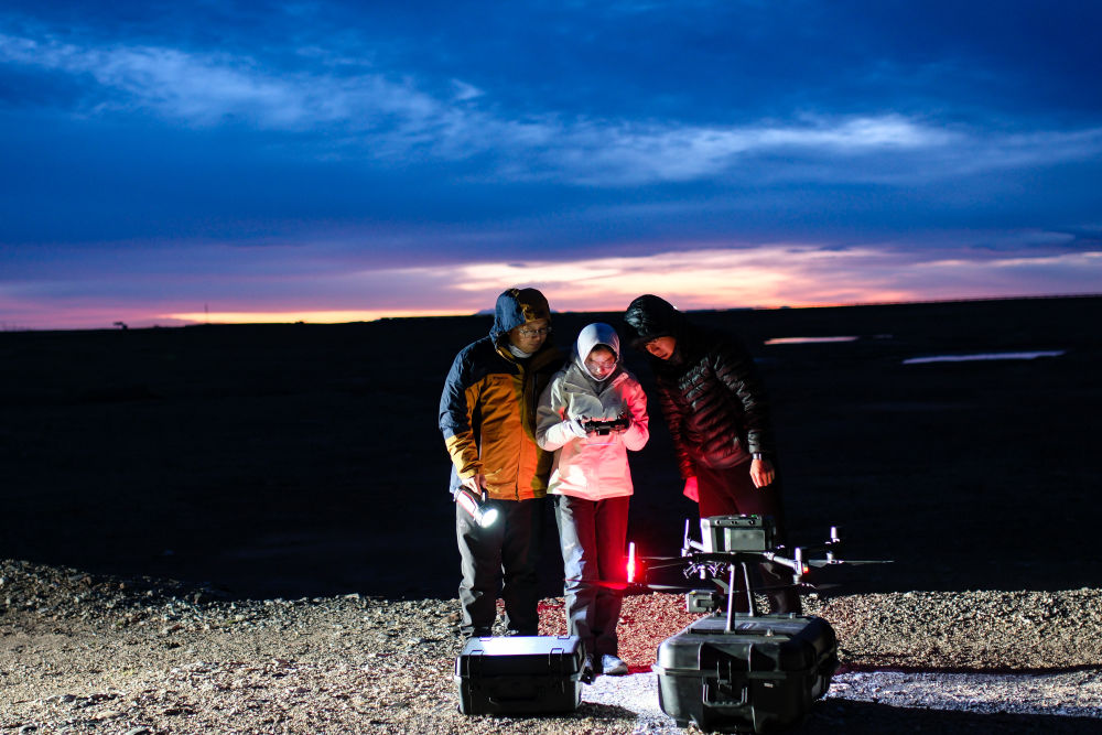 6月16日凌晨,連新明團(tuán)隊(duì)使用無(wú)人機(jī)監(jiān)測(cè)藏羚羊遷徙途中的夜宿地。