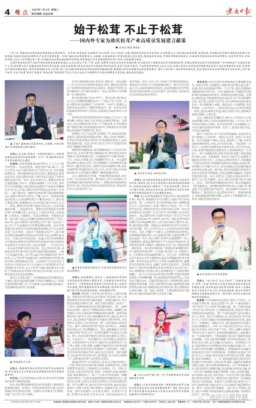 【關(guān)注】明日出版的《迪慶日?qǐng)?bào)》第四版將整版刊登國內(nèi)外專家對(duì)迪慶松茸產(chǎn)業(yè)高質(zhì)量發(fā)展給出的建議