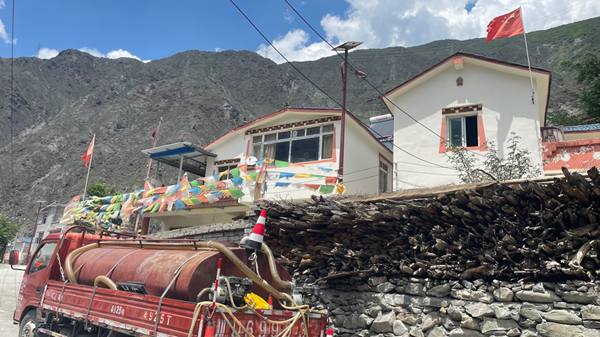 圖為四川省阿壩州黑水縣色爾古鎮(zhèn)五里村新的村落一角。村后的高山上是原村落舊址。新華網(wǎng) 陳穎 攝